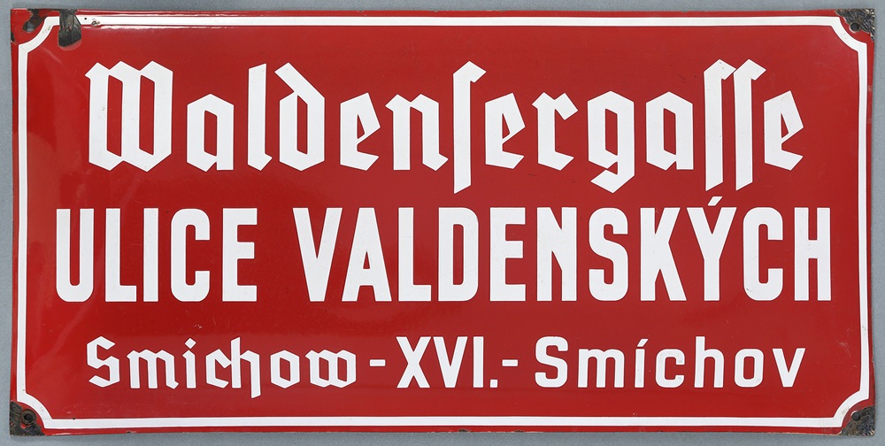 Dochovaná tabulka názvu ulice Valdenských (dnešní Kroftova) z doby okupace. / Zdroj: Muzeum hlavního města Prahy, inv. č. H 058 012.Kromě názvu ulice se na tabulkách v blíže neurčené době objevilo římskými číslicemi vyvedené číslo pražské čtvrti. Patrně od roku 1922 se vedle římského čísla městské části začalo objevovat i jméno katastrálního území. Pravděpodobně až tehdy také vznikly vypouklé tabulky, jak je známe dnes. Do dnešní doby se varianty těchto označení měnily podle správních reforem proměňujících čísla a počet pražských městských částí. Když se v roce 1960 změnilo správní členění Prahy na 10 obvodů, stalo se katastrální území spolu s číslem tohoto obvodu nedílnou součástí uliční tabulky, a i přes další vývoj a narůstání počtu pražských městských částí se tento způsob označení udržel doposud.