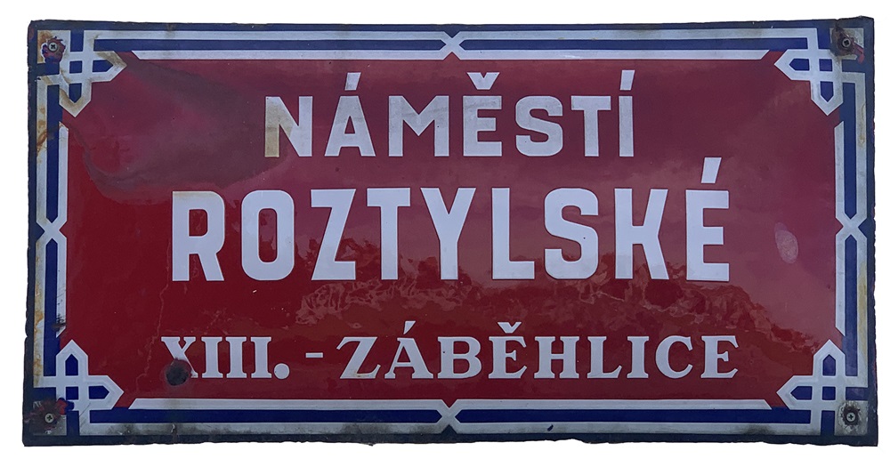 Tabulka na Roztylském náměstí z období první Československé republiky respektuje číslování čtvrtí římskými číslicemi z let 1922–1949. / Zdroj: Marek LašťovkaDoba okupace